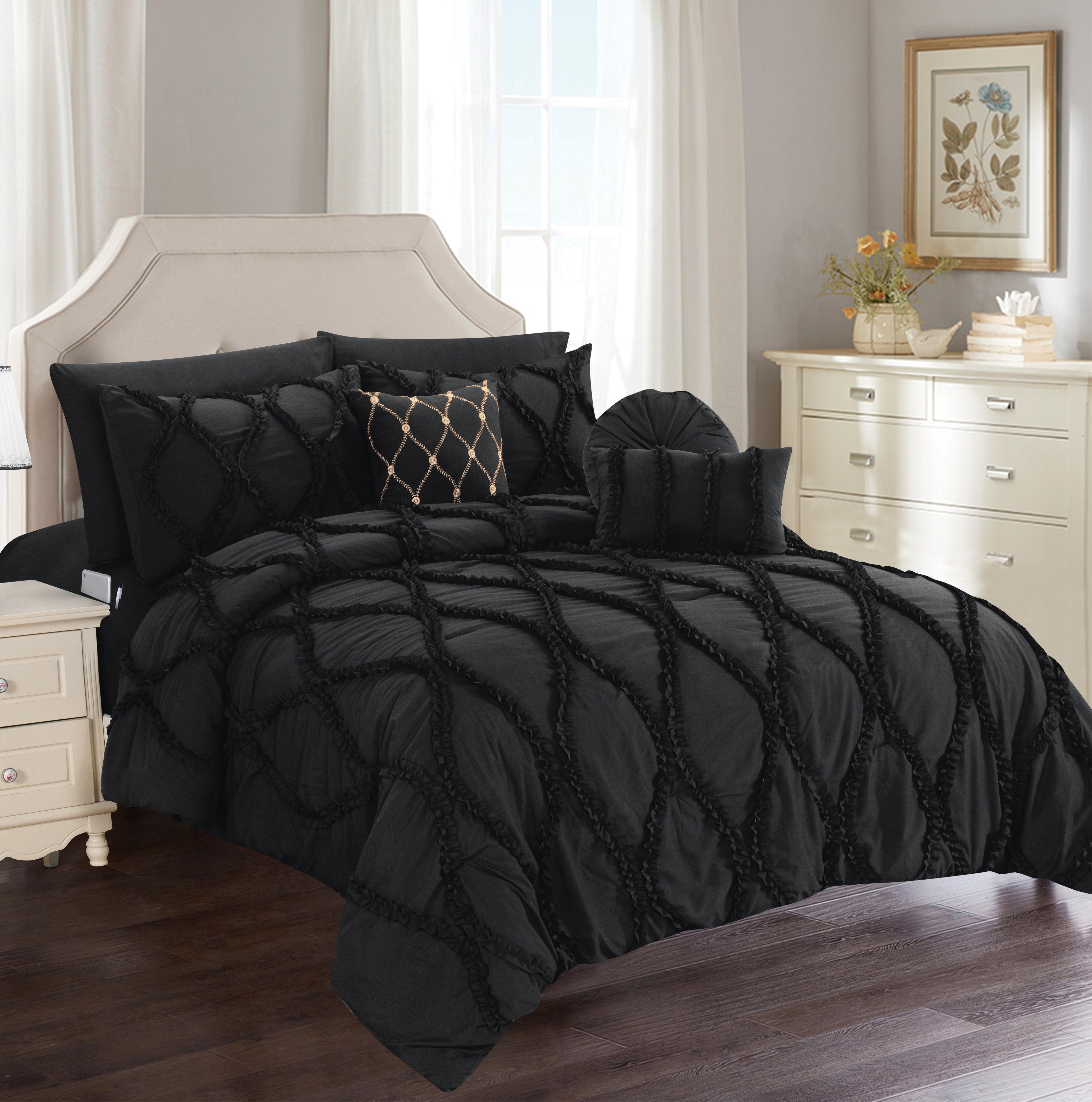 Everlaneas 10-Piece Pleated Comforter Set - Includes 4-Piece Sheet Set with Double Sided Storage Pockets